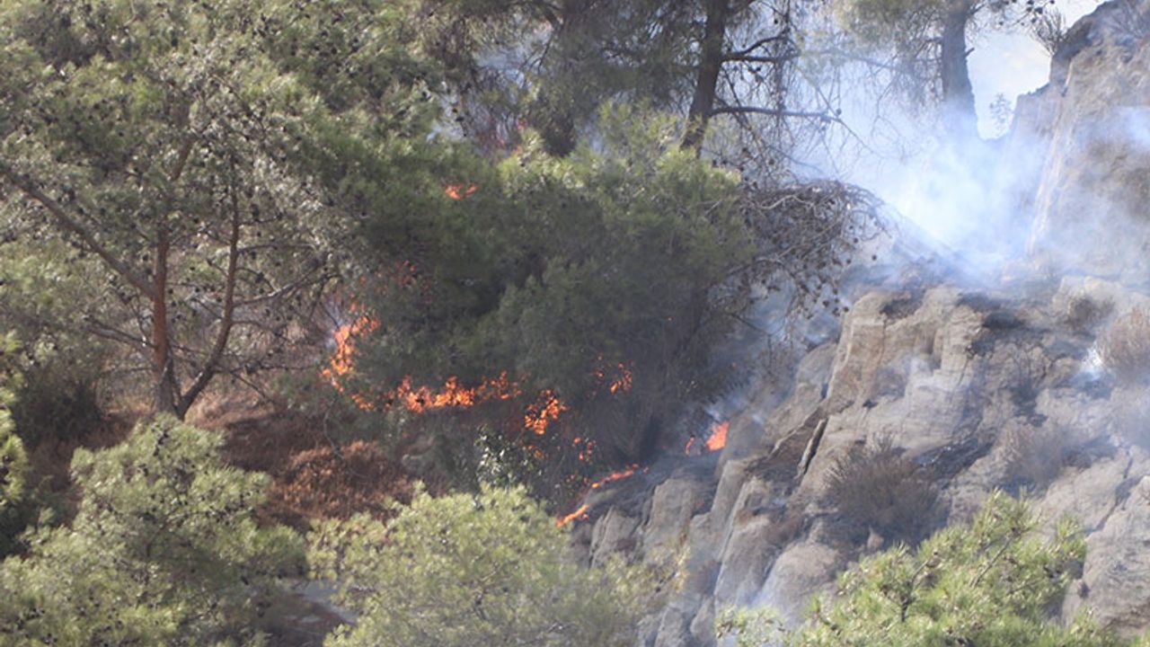 Aydın'ın Söke ilçesinde çıkan orman yangını kontrol altına alınırken, bölgede soğutma çalışmaları sürüyor.