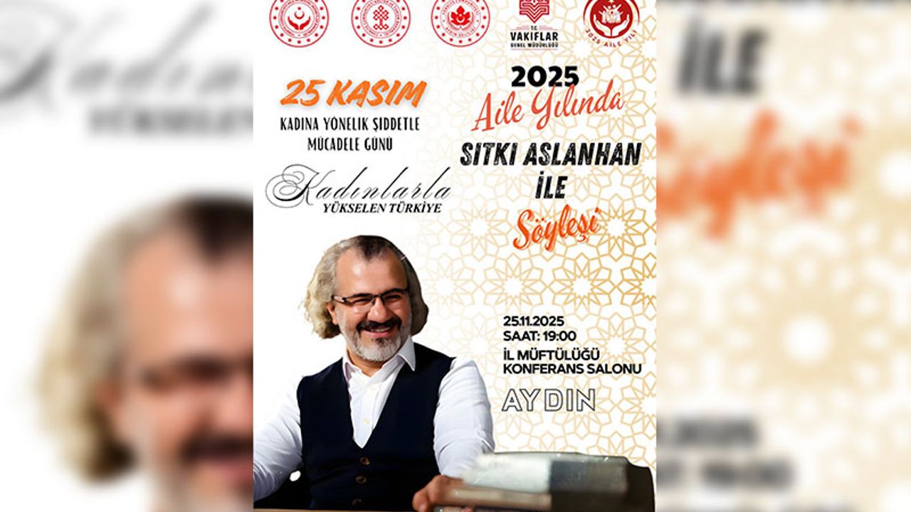 Söyleşi, 25 Kasım 2025 Salı günü saat 19.00’da Aydın İl Müftülüğü Konferans Salonunda gerçekleştirilecek. Etkinlikte, aile yapısının güçlendirilmesi, kadınların toplumdaki rolünün desteklenmesi ve kadına yönelik şiddetle mücadele gibi önemli konular masaya yatırılacak.