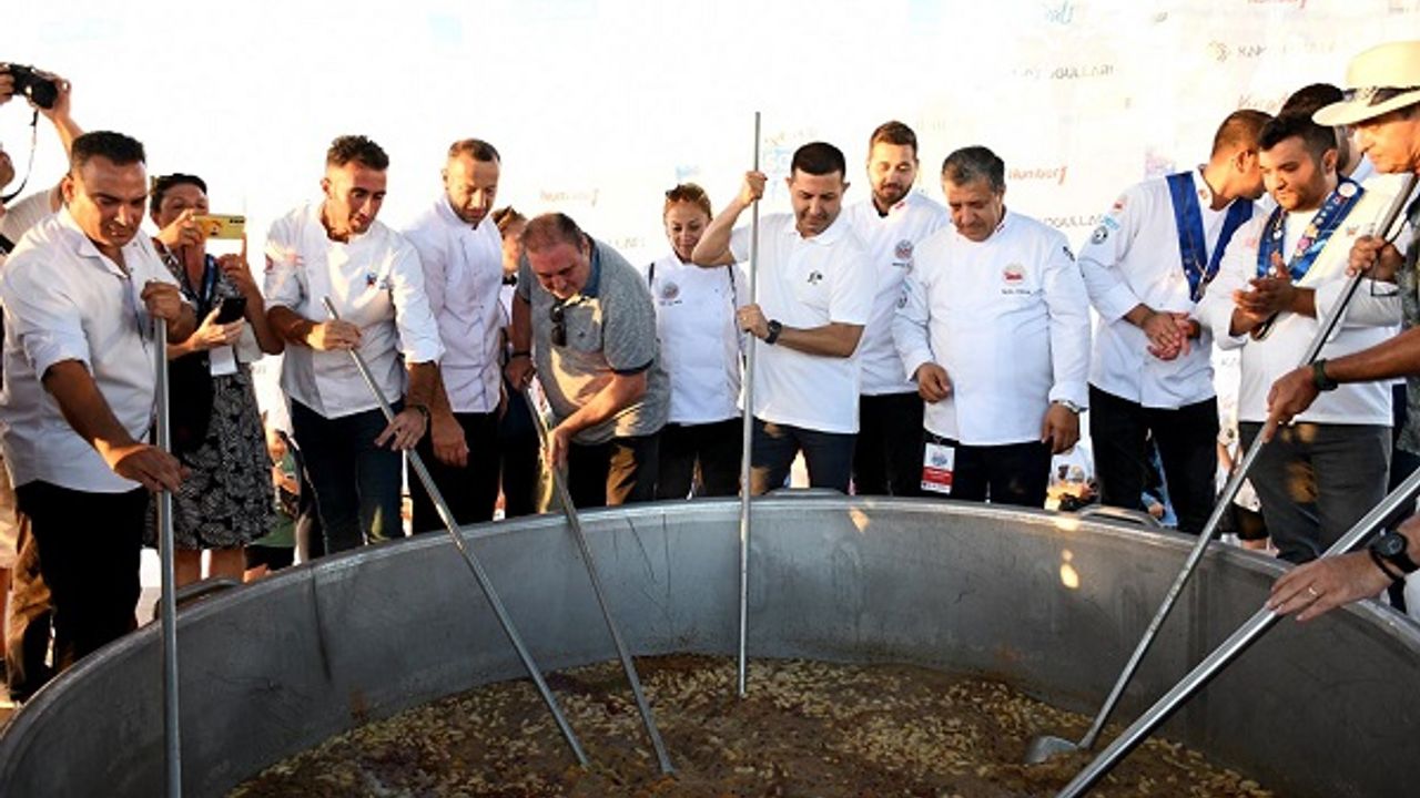 Kuşadası’nda 3 gün boyunca lezzet, müzik, sanat ve eğlenceyi birleştiren Kuşadası Sokak Festivali, 6 Şubat’ta meydana gelen depremden etkilenen 11 ilden getirilen malzemelerle 5 tonluk kazanda pişirilen 15 bin kişilik aşure ikramı ile sona erdi. Türkiye’nin farklı kentlerinden gelen 60 aşçı tarafından 39 çeşit ürünün birleşiminden yapılan aşure dev kazanda kaynatılarak yaklaşık 12 saat içinde hazır hale getirildi. Akşam saatlerinde vatandaşlara dağıtımı yapılan aşure büyük ilgi gördü.