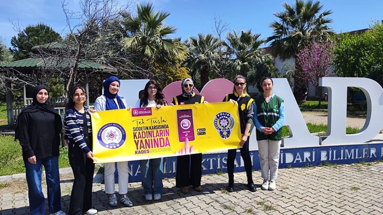 Nazilli İktisadi ve İdari Bilimler Fakültesi bahçesinde 20.00 ile 17.00 arasında düzenlenen etkinlikte, 250 kız öğrenciye KADES tanıtıldı.