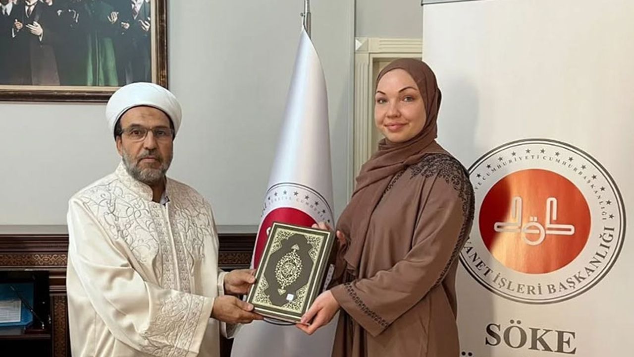 Aydın'ın Söke ilçesinde yaşayan yabancı uyruklu Beverly Birgit Liena Ter Hove, Müslüman olarak 'Berfin' ismini aldı.